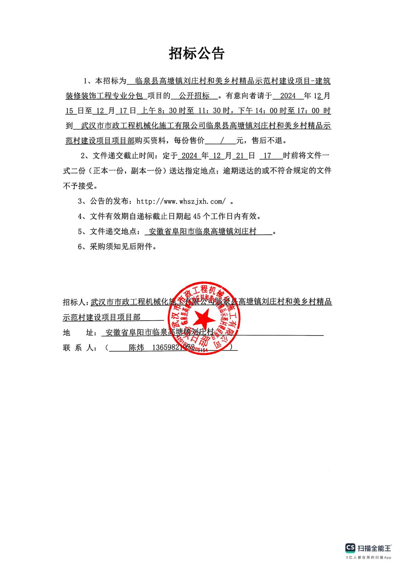 臨泉縣高塘鎮(zhèn)劉莊村和美鄉(xiāng)村精品示范村建設(shè)項(xiàng)目-建筑裝修裝飾工程專業(yè)分包招標(biāo)公告