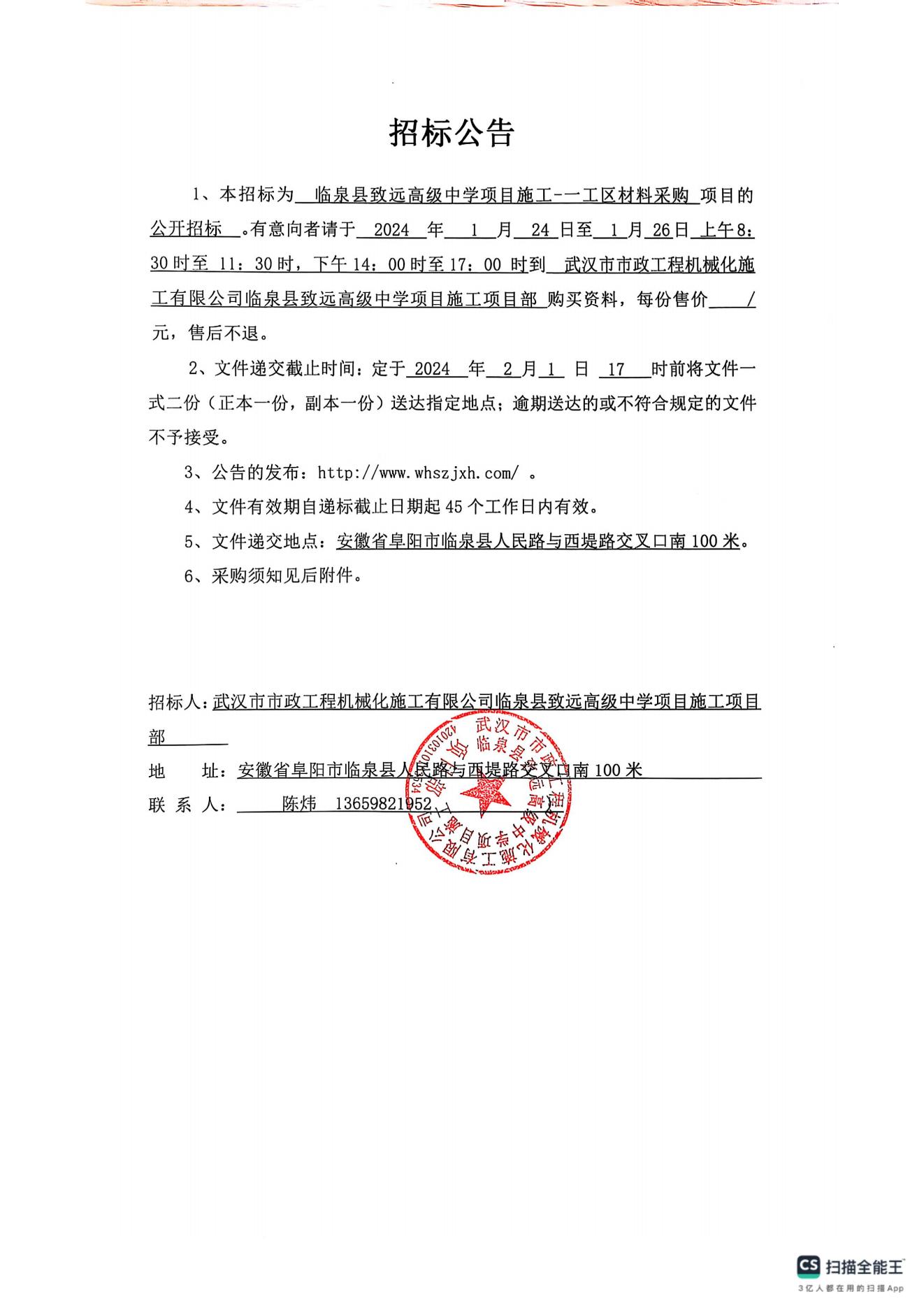 臨泉縣致遠(yuǎn)高級(jí)中學(xué)項(xiàng)目施工-一工區(qū)材料采購招標(biāo)公告